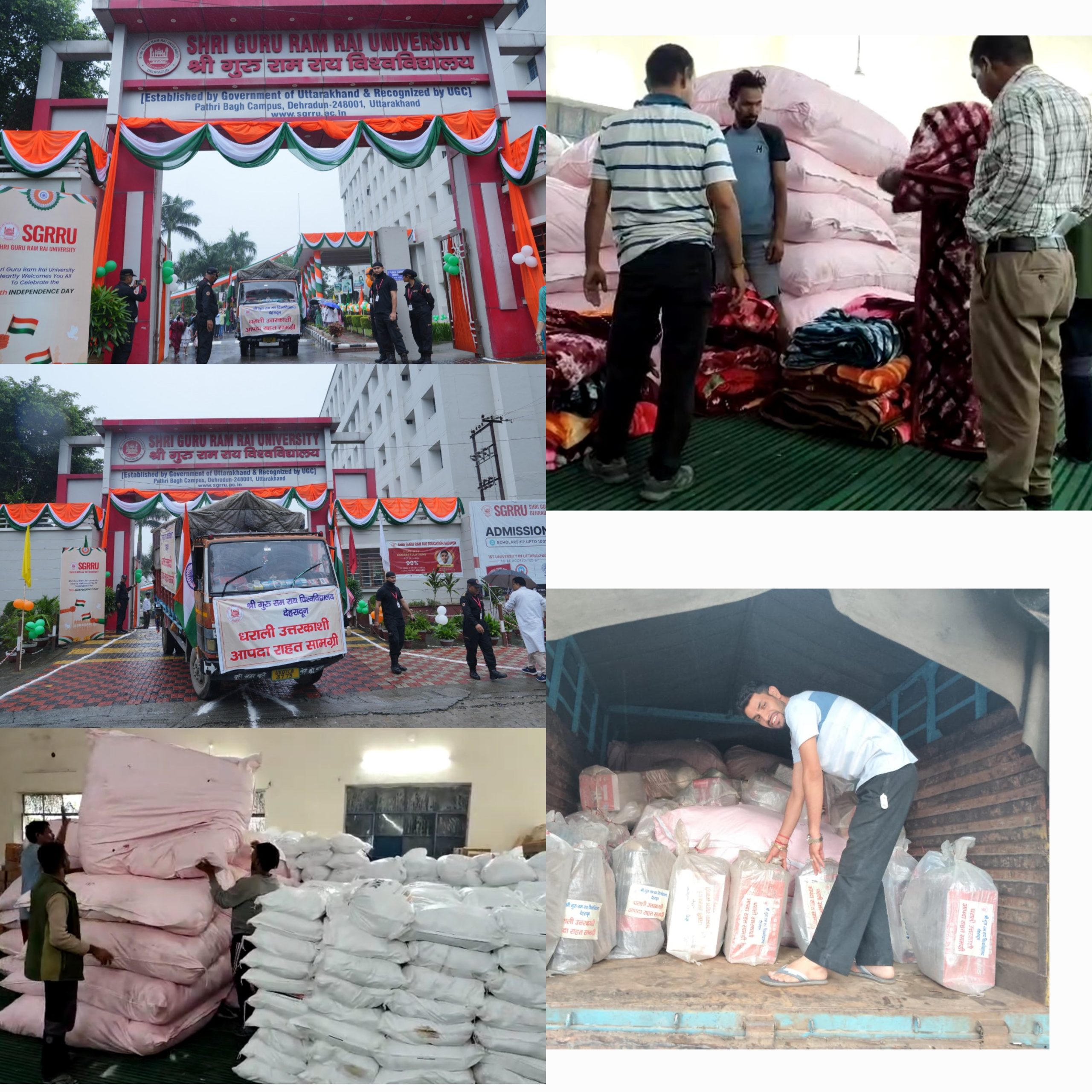 स्वतंत्रता दिवस के अवसर पर श्री गुरु राम राय विश्वविद्यालय ने धराली (उत्तरकाशी) आपदा प्रभावितों के लिए राहत एवम् खा़द्य सामग्री भेजी। 2 ट्रक सहित 4 वाहनों में राहत एवम् खाद्य सामग्री लेकर विश्वविद्यालय की टीम शुक्रवार सुबह रवाना हुई। स्वतंत्रता दिवस के पावन अवसर पर जब पूरा देश आजादी का जश्न मना रहा था, उसी समय श्री गुरु राम राय विश्वविद्यालय ने धराली (उत्तरकाशी) आपदा से पीड़ित परिवारों के जख्मों पर मरहम रखने का संकल्प लिया। मानवीय संवेदनाओं से ओत-प्रोत यह पहल शुक्रवार सुबह तब साकार हुई, जब कुलपति डॉ. कुमुद सकलानी और रजिस्ट्रार डॉ. लोकेश गंभीर ने राहत सामग्री से लदे वाहनों को हरी झंडी दिखाकर रवाना किया। श्री गुरु राम राय विश्वविद्यालय के माननीय प्रेसीडेंट श्रीमहंत देवेन्द्र दास जी महाराज ने कहा, “संकट की इस घड़ी में एसजीआरआर परिवार के सभी सदस्य पीड़ितों के साथ कंधे से कंधा मिलाकर हर सम्भव सहयोग करें। यह हमारा धर्म है, और हमारा कर्तव्य भी है।”