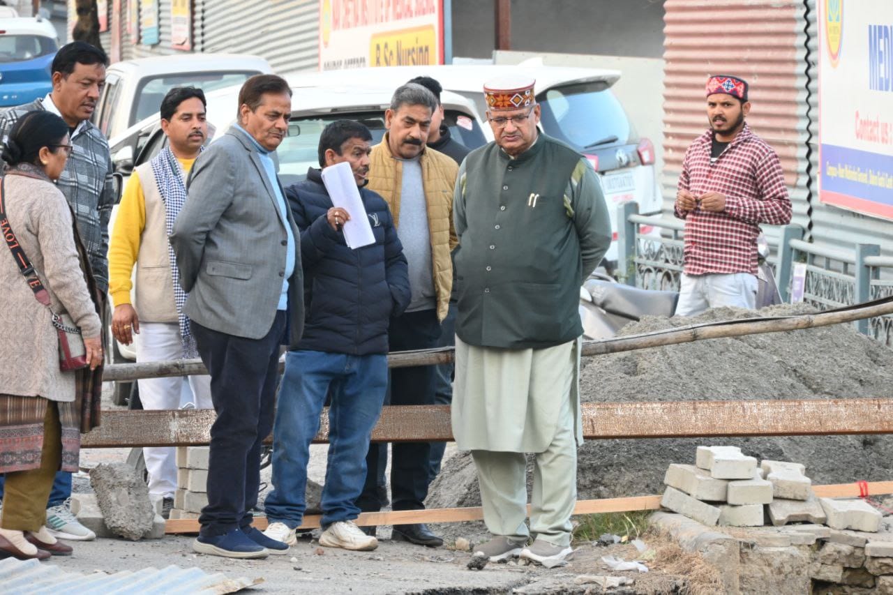 कैंट छावनी परिषद में लगभग 10 करोड़ रुपये की लागत से निर्माणाधीन सामुदायिक भवन और डाकरा में क्षतिग्रस्त हुए पुल के निर्माण कार्यों का निरीक्षण करते कैबिनेट मंत्री गणेश जोशी