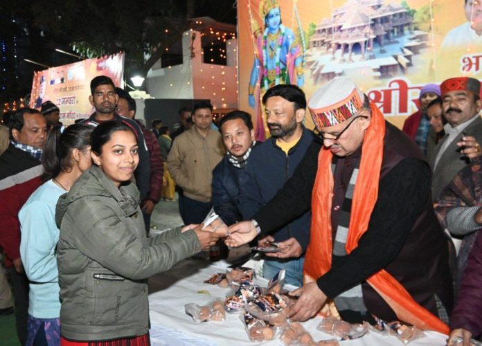 कैबिनेट मंत्री गणेश जोशी ने हाथीबड़कला में श्रीराम मंदिर की प्राण प्रतिष्ठा समारोह के निमित उत्सव कार्यक्रम के अंतर्गत दीप वितरण कार्यक्रम में प्रतिभाग कर आम जनमानस को दिए वितरण किया