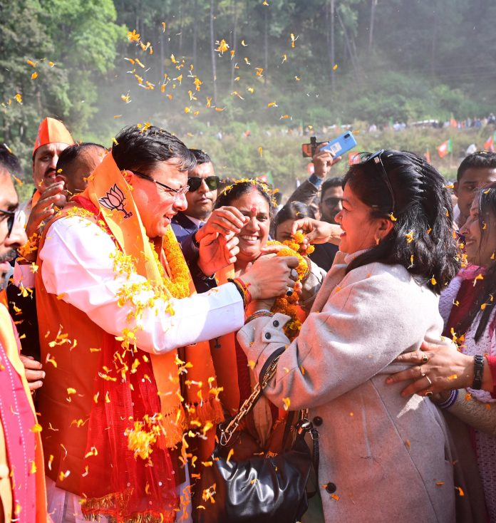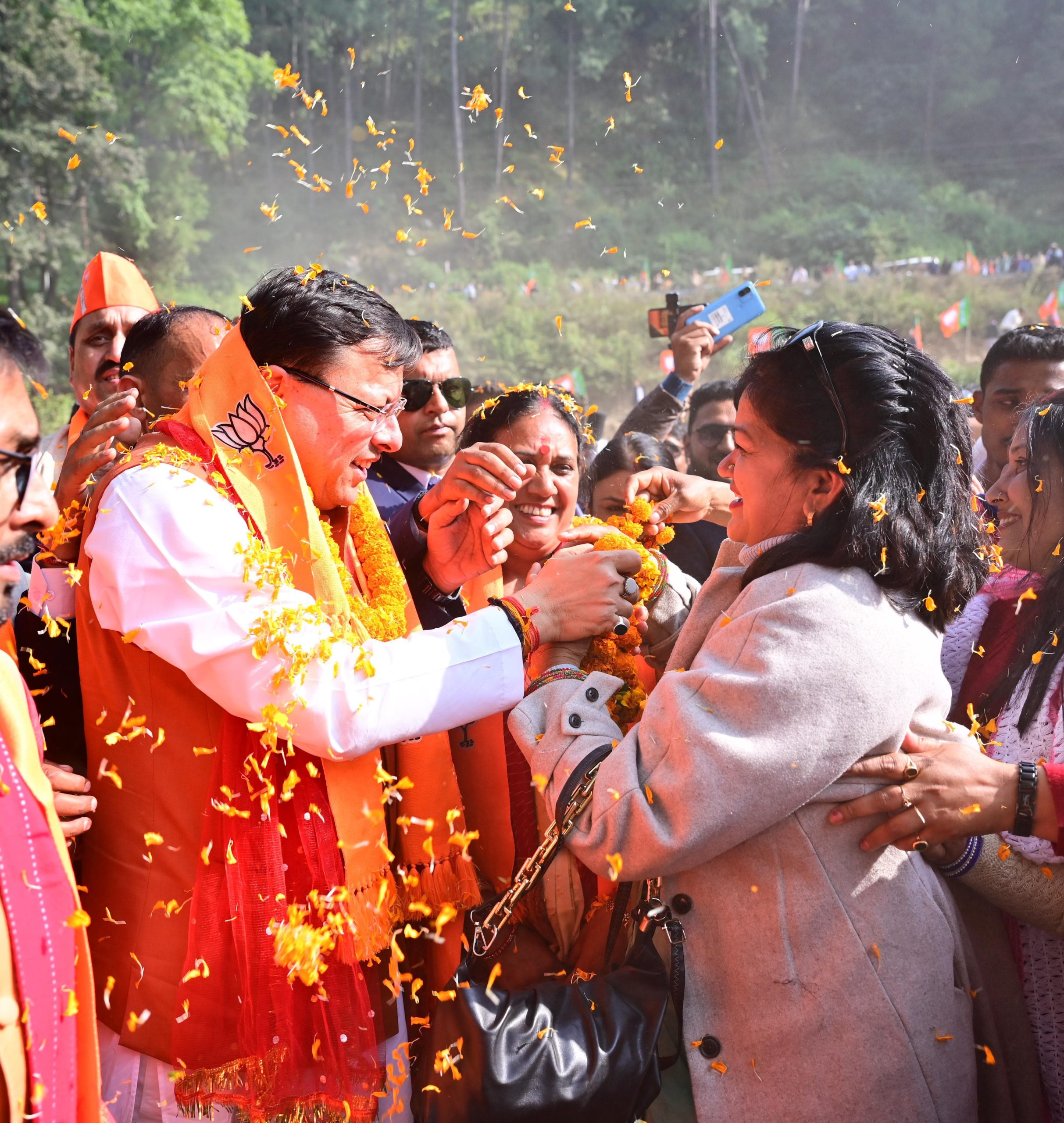धामी ने कहा कि कांग्रेस ने केदारनाथ की शिला को दिल्ली ले जाने की अफवाह भी फैलाई है। उन्होंने केदारनाथ की सौगंध खाते हुए कहा कि उन्होंने कभी भी केदारनाथ धाम की प्रतिष्ठा को ठेस पहुंचाने का काम नहीं किया है। कांग्रेस के पास कोई भी मुद्दा नहीं है इसलिए लोगों की भावना के साथ खेल रही है। मेरे पिछले तीन वर्षों के कार्यकाल में सबसे अधिक यात्री चार धाम यात्रा पर आये। इस वर्ष 56 दिनों की केदारनाथ यात्रा कम होने और आपदा से प्रभावित होने के बाबजूद भी सोलह लाख से अधिक यात्रियों ने दर्शन किये। जुलाई माह में केदारनाथ पैदल यात्रा मार्ग पर आयी भीषण यात्रा में प्रभावितों को मदद देने में हमने कोई कोर कसर नहीं छोड़ी। मैंने स्वयं मंत्रीयो सहित 24 घंटे के अन्दर मौके पर पहुंच कर आपदा प्रबंधन का कार्य अपने हाथों में लेते हुए सोलह हजार से अधिक यात्रियों को तत्काल रेस्क्यू करवाया, जिस कारण जनहानि पर रोक लगी। हम सब साथ मिलकर नया केदार बनायेंगे। कहा कि लब जिहाद लैंड जिहाद और थूक जिहाद के खिलाफ कड़ी कार्यवाही करते हुए 500 एकड़ जमीन को हमने अतिक्रमण से मुक्त कराया। उन्होंने कांग्रेस पर आरोप लगाते हुए कहा कि लैंड जिहाद बढ़ावा देने वाले आज अपने आप को सनातनी बता रही है। जिस सरकार ने 2015 में मुम्बई के बसई में बद्रीनाथ मन्दिर बनवाया वो हमें अपने जैसा बता रहे हैं। जबकि हमने चार धाम के मन्दिर न बन पाए इसके लिए कानून बनाया। हमने समान बाबा साहेब के सपनों को धरातल पर उतारने के लिए समान नागरिकता कानून बनाया। हमने सशक्त नकल विरोधी कानून बनाकर भी बनाना और जल्द ही सशक्त भू कानून भी बना रहे हैं।