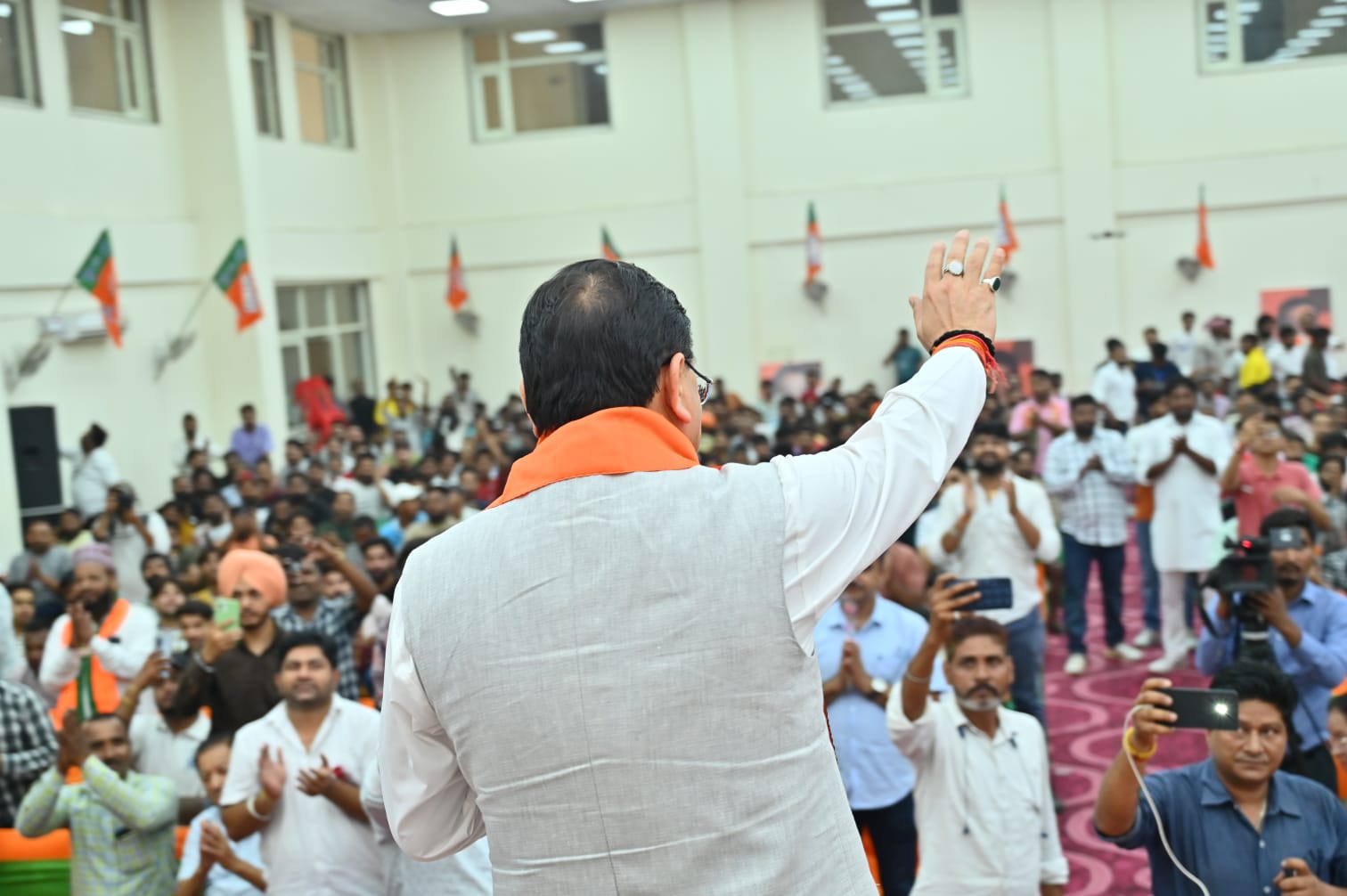 मुख्यमंत्री पुष्कर सिंह धामी ने सोमवार को हरियाणा विधान सभा चुनाव सेक्टर 15,पंचकुला पहुंचकर भाजपा प्रत्याशी ज्ञान चन्द गुप्ता के पक्ष में आयोजित ‘जनसभा’ में प्रतिभाग किया। इस अवसर पर मुख्यमंत्री ने जनसभा को संबोधित करते हुए स्थानीय जनता से भाजपा के पक्ष में मतदान करने की अपील की।