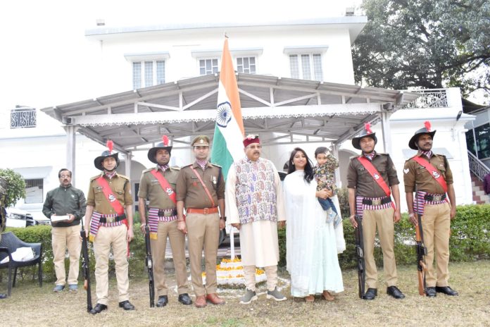 गणतंत्र दिवस के अवसर पर प्रदेश के कैबिनेट मंत्री सतपाल महाराज ने सुभाष रोड़ स्थित अपने कैम्प कार्यालय परिसर में अपने स्टाफ की उपस्थिति में ध्वजारोहण किया। उन्होंने सभी को गणतंत्र दिवस की शुभकामनाएं देते हुए सभी से गणतंत्र को मजबूत करने के साथ-साथ देश की एकता एवं अखंडता को बनाए रखने की भी अपील की। उन्होंने कहा कि आज प्रधानमंत्री नरेंद्र मोदी के मार्गदर्शन और मुख्यमंत्री पुष्कर सिंह धामी के नेतृत्व में उत्तराखंड का निरंतर विकास हो रहा है। ध्वजारोहण के दौरान कैबिनेट मंत्री श्री महाराज की पुत्रवधू मोहिना सिंह भी मौजूद रहीं।