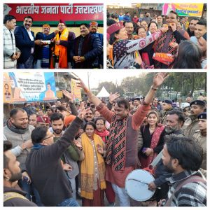 मुख्यमंत्री के द्वारा ऐतिहासिक समान नागरिक संहिता बिल पारित करने पर महानगर के अध्यक्ष सिद्धार्थ उमेश अग्रवाल के नेतृत्व में आम से लेकर ख़ास ने धामी का विधान सभा के गेट पर ढोल नगाड़े के साथ मिष्ठान वितरण एवं स्वागत अभिनंदन किया
