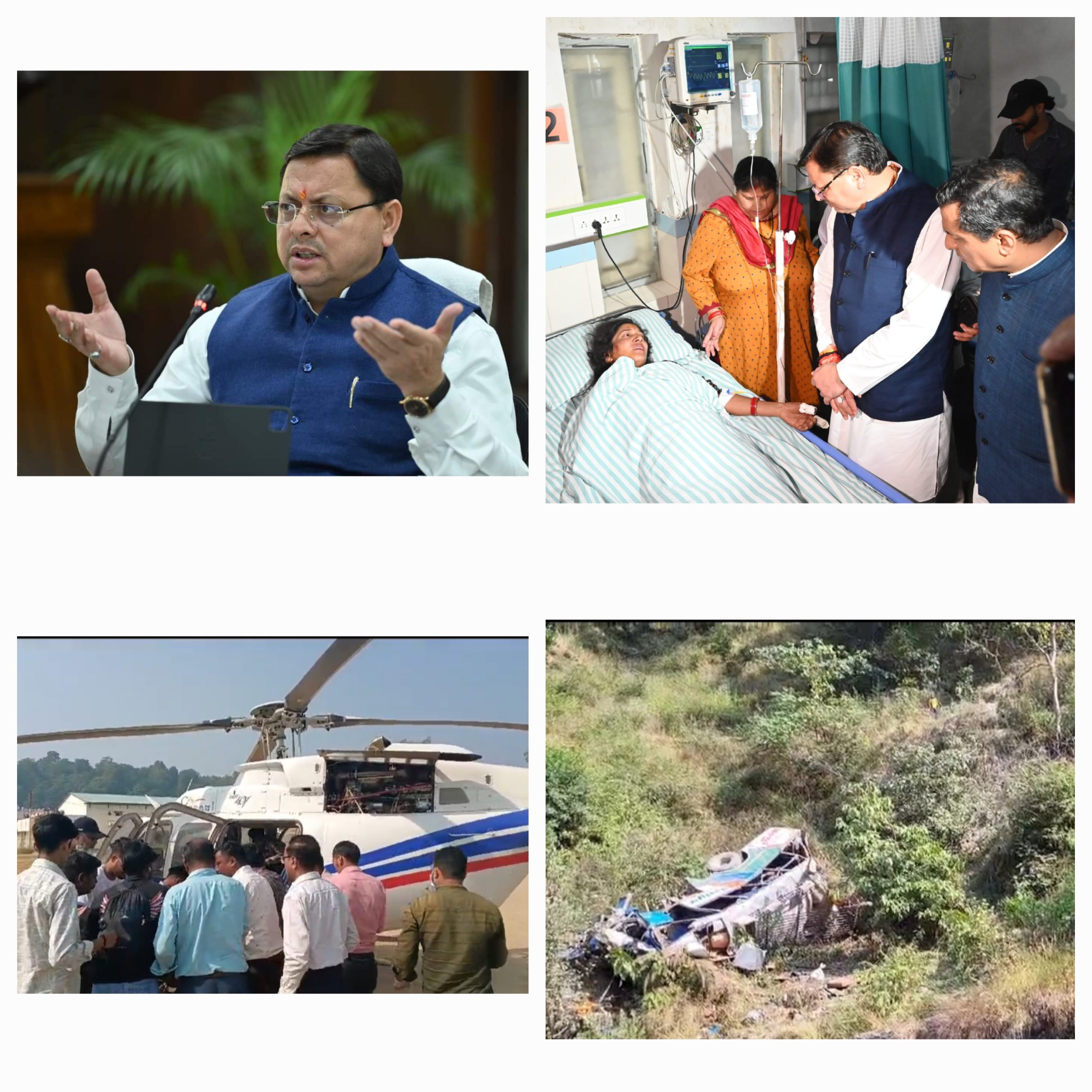 मुख्यमंत्री ने रामनगर चिकित्सालय में भर्ती घायलों का हालचाल जाना तथा उनके बेहतर उपचार हेतु आवश्यक निर्देश सीएमओ व अन्य चिकित्सकों को दिए। उन्होंने कहा कि प्रत्येक घायल व्यक्ति को बेहतर से बेहतर उपचार मिले, अगर उन्हें हायर सेन्टर भेजने की आवश्यकता है तो एयर एंबुलेंस से तत्काल भेजा जाय इस दौरान मुख्यमंत्री घायलों के परिजनों से भी मिले तथा उन्हें घायलों को बेहतर से बेहतर इलाज उपलब्ध कराने को आश्वस्त कराया।