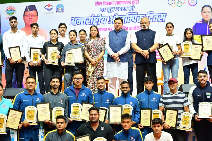 मुख्यमंत्री श्री पुष्कर सिंह धामी ने सोमवार को अंतरराष्ट्रीय ओलंपिक दिवस के अवसर पर परेड ग्राउंड देहरादून में आयोजित कार्यक्रम में प्रतिभाग किया। इस अवसर पर उन्होंने अन्तरराष्ट्रीय और राष्ट्रीय स्तर पर पदक जीतने वाले खिलाड़ियों को सम्मानित भी किया एवं खिलाड़ियों को खेल भावना की शपथ भी दिलाई। मुख्यमंत्री ने कहा कि यह दिन खेल भावना, एकता और शांति के मूल्यों को समर्पित है। ओलंपिक केवल प्रतिस्पर्धा नहीं, बल्कि समर्पण, साधना और राष्ट्रीय गौरव का प्रतीक हैं।