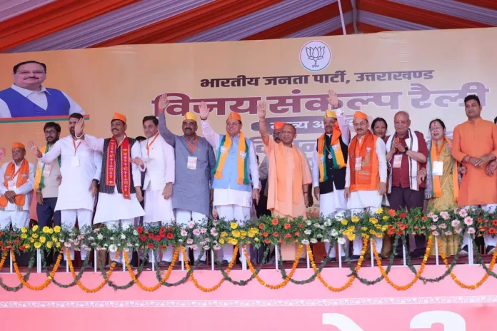 उत्तर प्रदेश के मुख्यमंत्री योगी आदित्यनाथ एवं उत्तराखंड के मुख्यमंत्री पुष्कर सिंह धामी ने शनिवार को एम.बी इण्टर कॉलेज मैदान, हल्द्वानी (नैनीताल) में भाजपा द्वारा आयोजित विजय संकल्प रैली में प्रतिभाग किया।