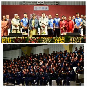 बतौर मुख्य अतिथि, मुख्यमंत्री ने कहा कि हमारा संकल्प, विकल्प रहित होना चाहिए। संकल्प से ही हम किसी भी लक्ष्य को प्राप्त कर सकते हैं। मुख्यमंत्री ने कहा राज्य 38वें राष्ट्रीय खेलों के सफल आयोजन हेतु अब पूर्ण रूप से तैयार है। इस आयोजन के लिए राज्य सरकार ने अवस्थापना सुविधाओं में लगभग 500 करोड़ रुपये का प्रावधान किया है, जिससे राज्य में कई नए खेल मैदानों का निर्माण, स्टेडियम और स्विमिंग पूलों का पुनर्निर्माण, वाटर स्पोर्ट्स के लिए इन्फ्रास्ट्रक्चर, साइकिलिंग ट्रैक, शूटिंग रेंज को विकसित किया जा रहा है।