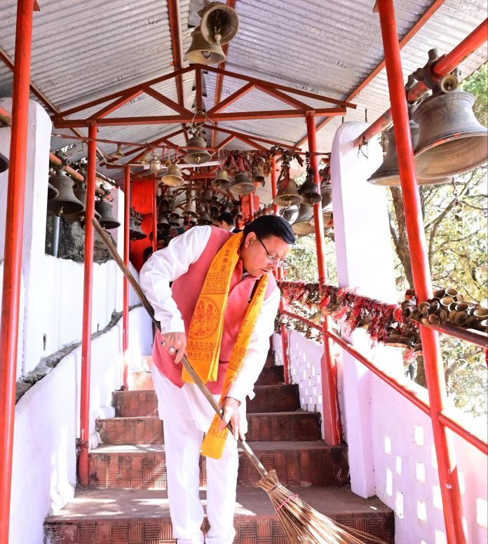 मुख्यमंत्री धामी ने कैंचीधाम परिसर और घोड़ाखाल मंदिर में चलाया स्वच्छता अभियान