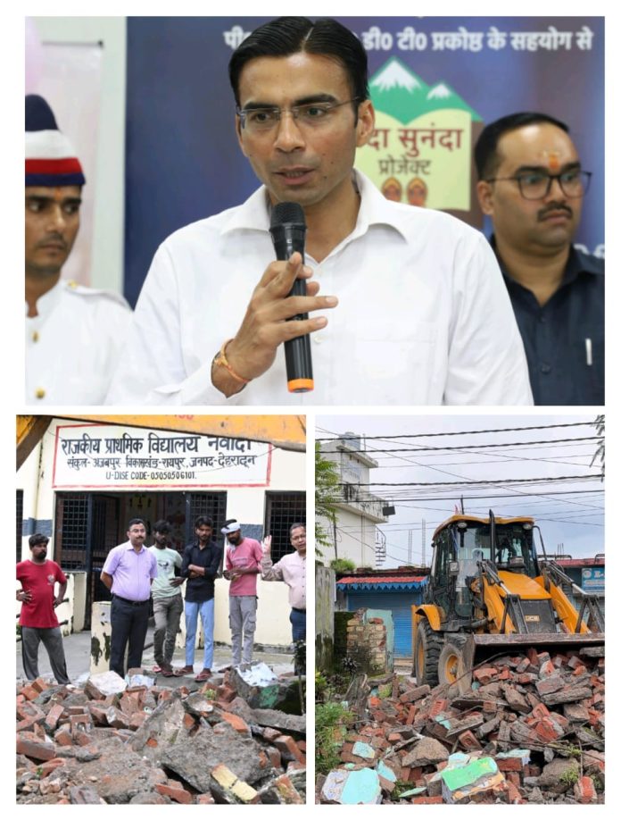 देहरादून दिनांक 23 अगस्त 2025 (सू.वि), जिलाप्रशासन देहरादून ने सरकारी भूमि पर अतिक्रमण कर किए गए निर्माण को हटा दिया गया है। राजकीय प्राथमिक विद्यालय नवादा परिसर में बनी अवैध निर्माण कर बनाई गई मजार को आज ध्वस्त कर दिया। जिला प्रशासन को शिकायत प्राप्त हुई थी कि स्कूल परिसर में सरकारी भूमि पर अवैध निर्माण कर मजार बनाई गई है, जिससे बच्चों की पढ़ाई का वातावरण भी प्रभावित हो रहा है।