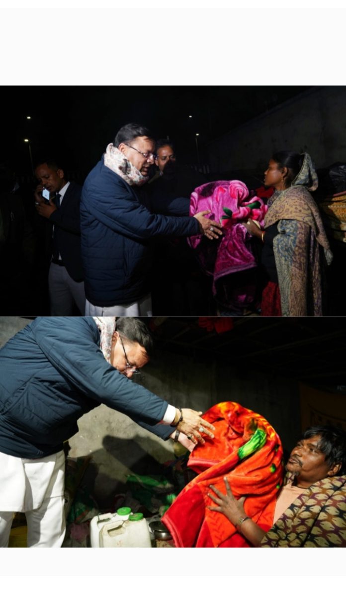 धामी जी ने सभी रैन बसेरों की व्यवस्था ठीक करने के दिये निर्देश,जरूरतमंदों को किए कंबल वितरण