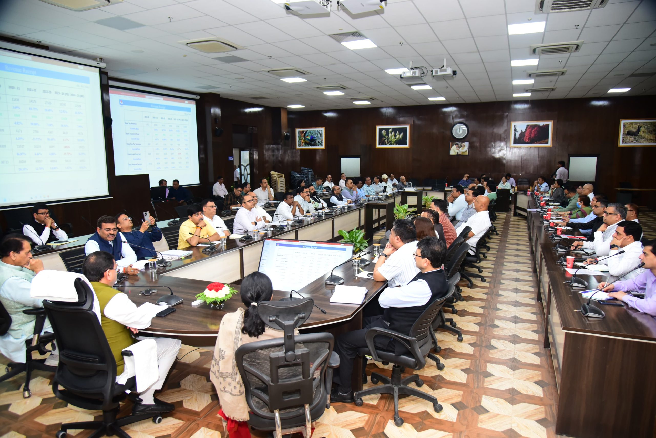 बैठक में राज्य राजस्व संसाधनों में वृद्धि के लिये किये जा रहे प्रयासों, प्रतिबद्ध और गैर प्रतिबद्ध व्यय की प्रवृत्ति, महत्वपूर्ण योजनाओं के लिए पर्याप्त संसाधनों की उपलब्धता,राजकोषीय संसाधनों का बेहतर तरीके से उपयोग आदि विषयों पर चर्चा की गई। बैठक में डी.पी.आर. बनाने से लेकर परियोजना पूरा करने तक पूंजीगत परियोजनाओें के कार्य की ई-मानीटरिंग, ई-गवर्नेंस का उपयोग और राजस्व स्रोतों की डिजिटल निगरानी, रिकार्ड, दस्तावेज और सेवाएं देने हेतु पेपरलेस विधि का उपयोग,ई-वाहन को बढ़ावा देने पर भी चर्चा की गई। मुख्यमंत्री ने निर्देश दिये कि जिन योजनाओं में केन्द्रांश और राज्यांश क्रमशः 90 और 10 के अनुपात में हो उनको अधिक प्राथमिकता दी जाए। नाबार्ड द्वारा वित्त पोषित सार्वजनिक कार्यों में तेजी लाने के निर्देश दिये।