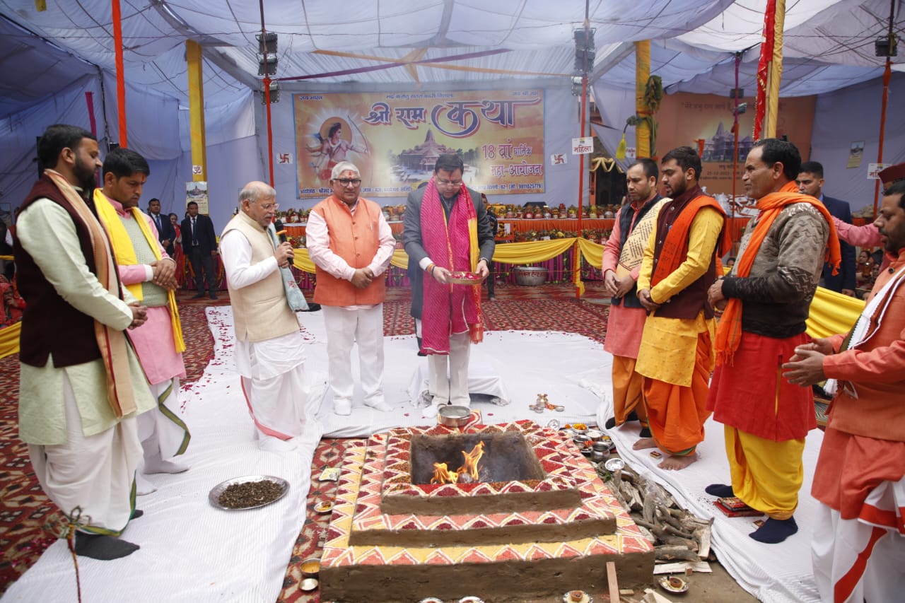 मुख्यमंत्री पुष्कर सिंह धामी ने शुक्रवार को विनोद नगर वॉर्ड स्थित श्री बद्रीनाथ मंदिर में श्रीमद् भागवत महापुराण ज्ञान-यज्ञ आयोजन समिति द्वारा आयोजित श्रीराम कथा के 18वें धार्मिक महा-आयोजन में प्रतिभाग किया। इस अवसर पर उन्होंने श्रीराम कथा सुनी। श्रीराम कथा का वाचन भगवताचार्य डॉ. गीता राम त्रिपाठी द्वारा किया गया।