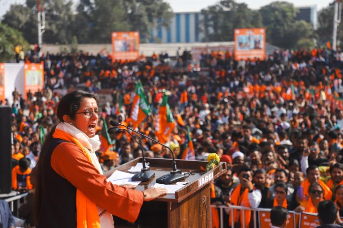 भाजयुमो की राष्ट्रीय उपाध्यक्ष नेहा जोशी ने लगभग 25 हजार से अधिक के जनसमूह को सम्बोधित करते हुए कहा कि प्रधानमंत्री मोदी ने पिछले 10 साल में अभूतपूर्व काम किए