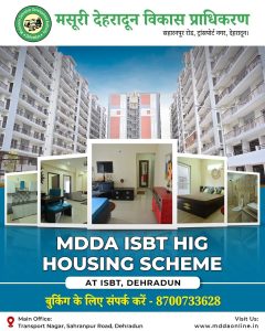 देहरादून: मसूरी-देहरादून विकास प्राधिकरण (एमडीडीए) की हाई-इंकम ग्रुप (एचआईजी) आवासीय परियोजना, जो आइएसबीटी के निकट स्थित है, ने तेज निर्माण और प्रभावी योजना के चलते बुकिंग में उल्लेखनीय सफलता हासिल की है।